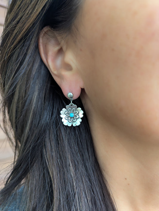 Sterling Silver Blossom Earrings with Turquoise Accents