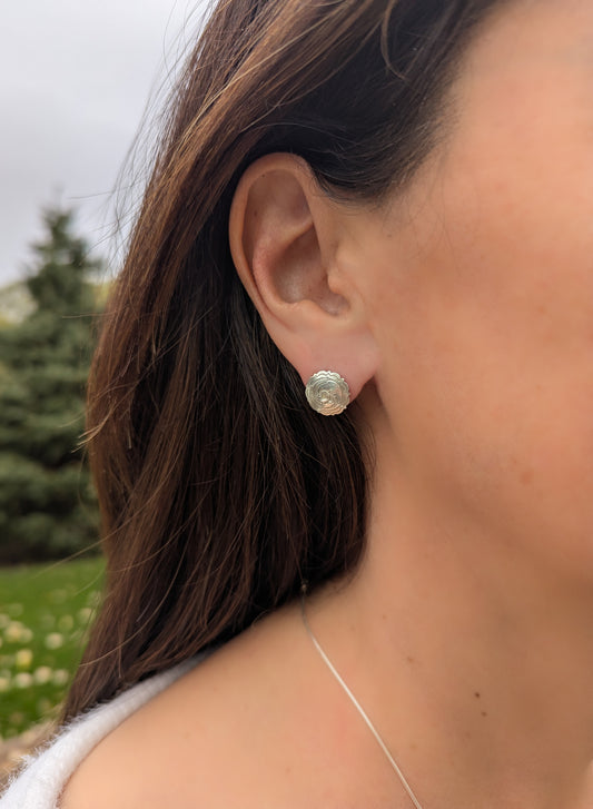 Sterling Silver scallop Mini Concho Earrings – ½” Engraved