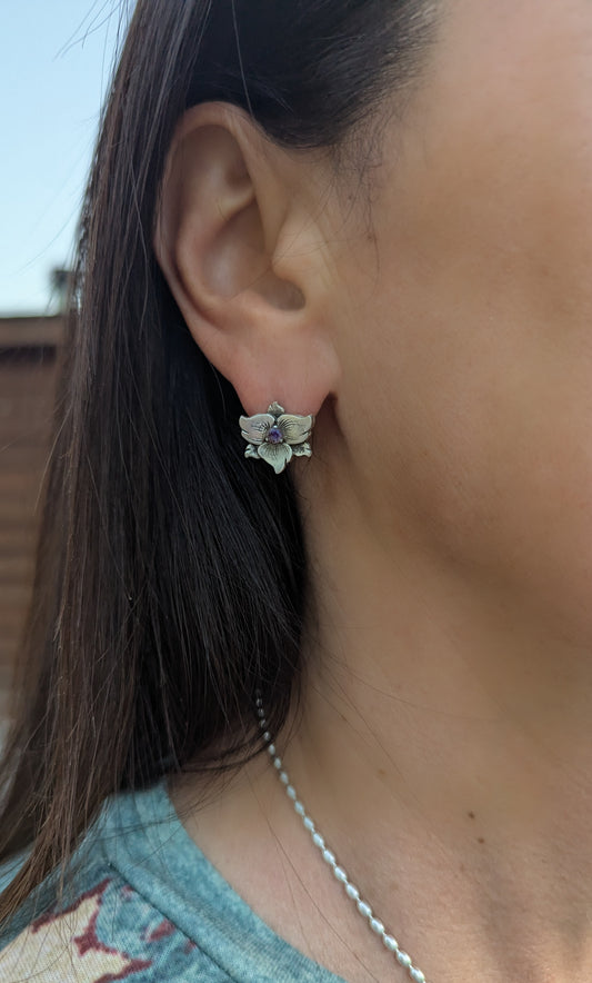 Sterling Silver Blossom Earrings with Turquoise Accents