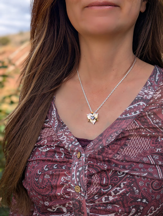 Sterling Silver & Jeweler’s Bronze Flower Necklace with Lavender Stone